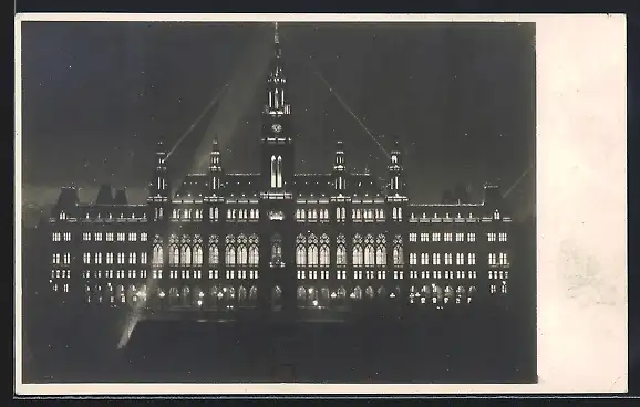 AK Wien, Rathaus mit Festbeleuchtung