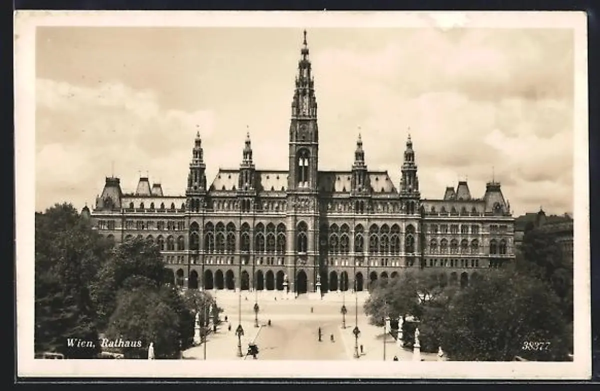 AK Wien, Rathaus mit Passanten