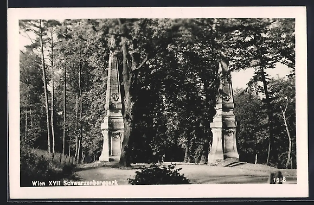 AK Wien, Schwarzenbergpark, Partie mit zwei Obelisken