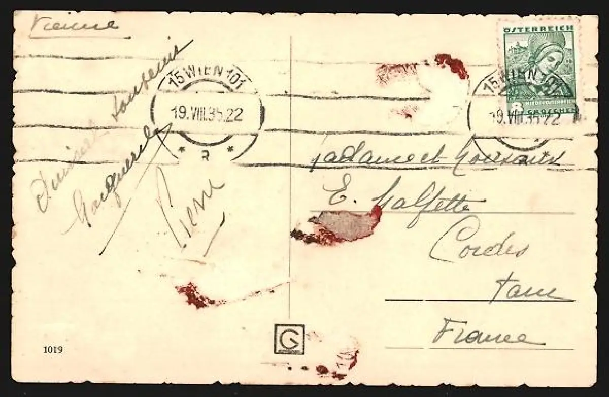 gelaufen 1935, rückseitig Klebe- und Papierreste, guter Zustand