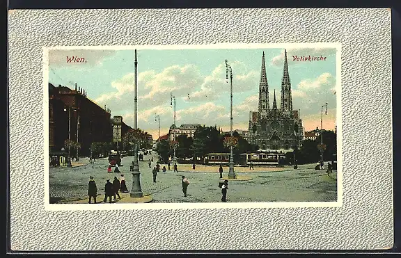 AK Wien, Votivkirche mit Strassenbahn