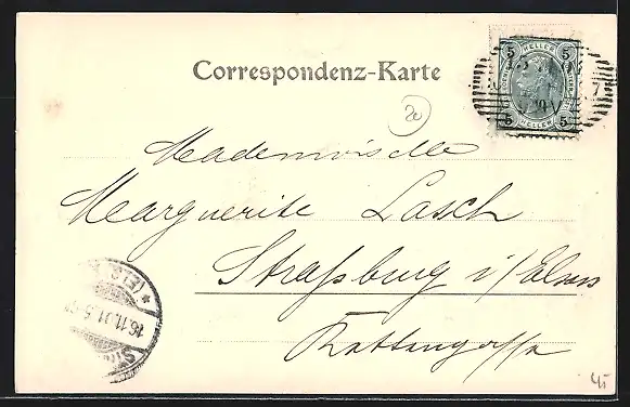 alte Ansichtskarte, gelaufen 1901, Stempelspur, guter Zustand