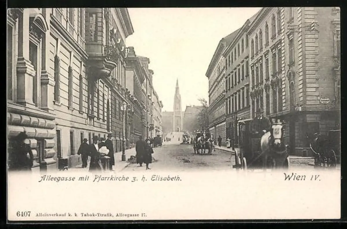 AK Wien-Wieden, Alleegasse mit Pfarrkirche z. h. Elisabeth