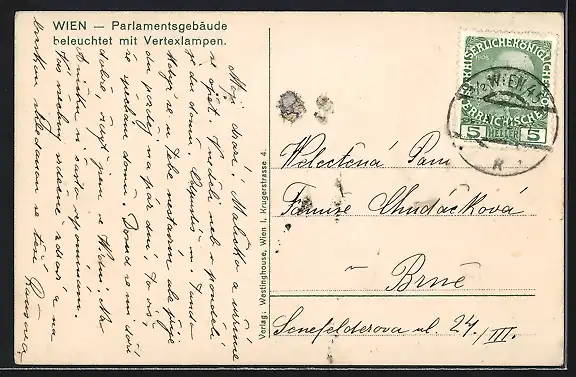 AK Wien, Wien, Blick auf das Parlamentsgebäude, beleuchtet mit Vertexlampen
