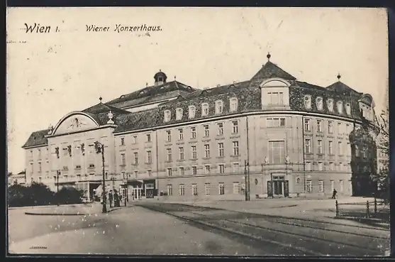 AK Wien, Wiener Konzerthaus mit Strasse und Abzweig