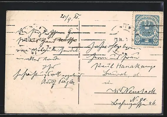 alte Ansichtskarte, gelaufen 1921, Eckknicke re., Abriebspuren unten li., Stempelspur, guter Zustand