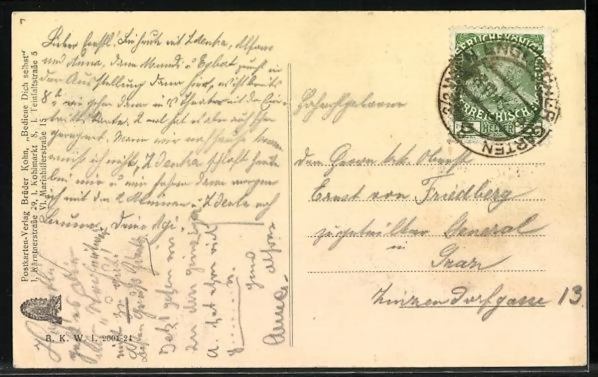 alte Ansichtskarte, gelaufen 1910, Stempelspur, guter Zustand