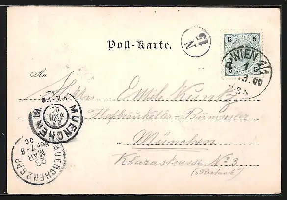 alte Ansichtskarte, gelaufen 1900, guter Zustand