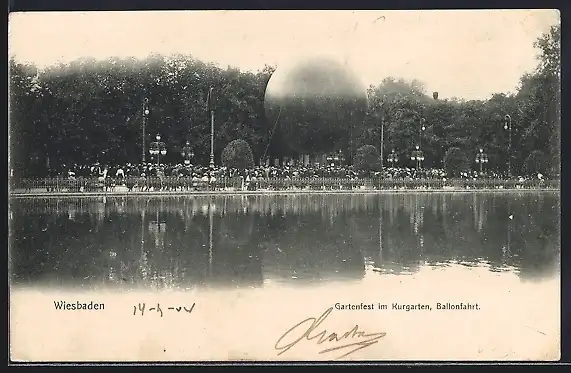 AK Wiesbaden, Gartenfest im Kurgarten, Ballonfahrt