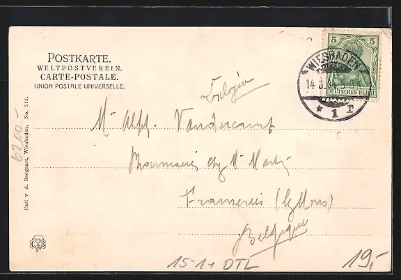 alte Ansichtskarte, gelaufen 1903, Eckknick li. unten, guter Zustand