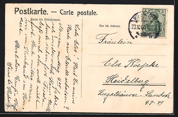 alte Ansichtskarte, gelaufen 1906, Eckknick li. unten, Stempelspur, guter Zustand