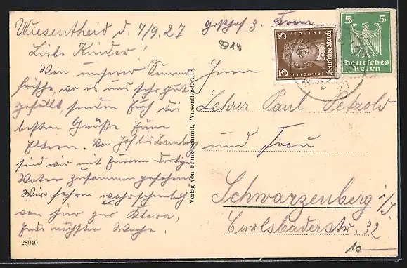 alte Ansichtskarte, gelaufen 1927, guter Zustand
