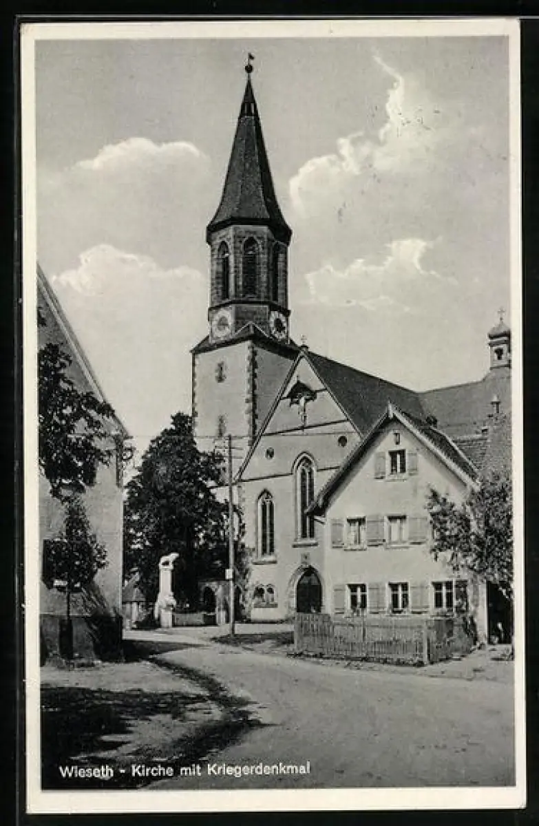 AK Wieseth, Kirche mit Kriegerdenkmal