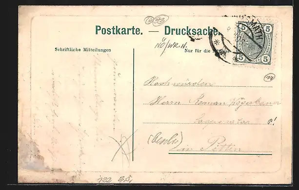 alte Ansichtskarte, gelaufen 1906, rückseitig Klebe- und Papierreste, Eckknick re. oben, guter Zustand