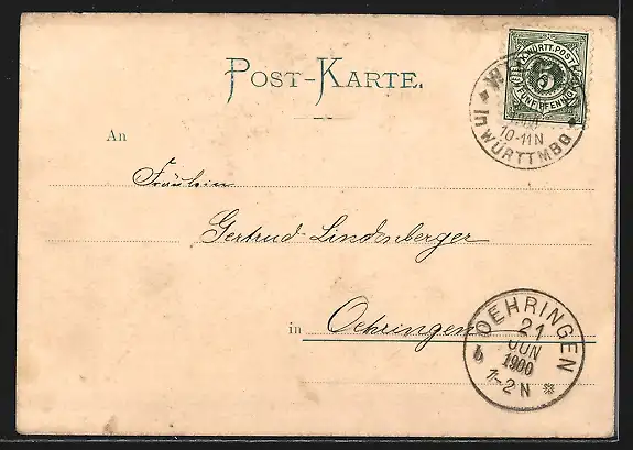 alte Ansichtskarte, gelaufen 1900, Einriss oben re., guter Zustand