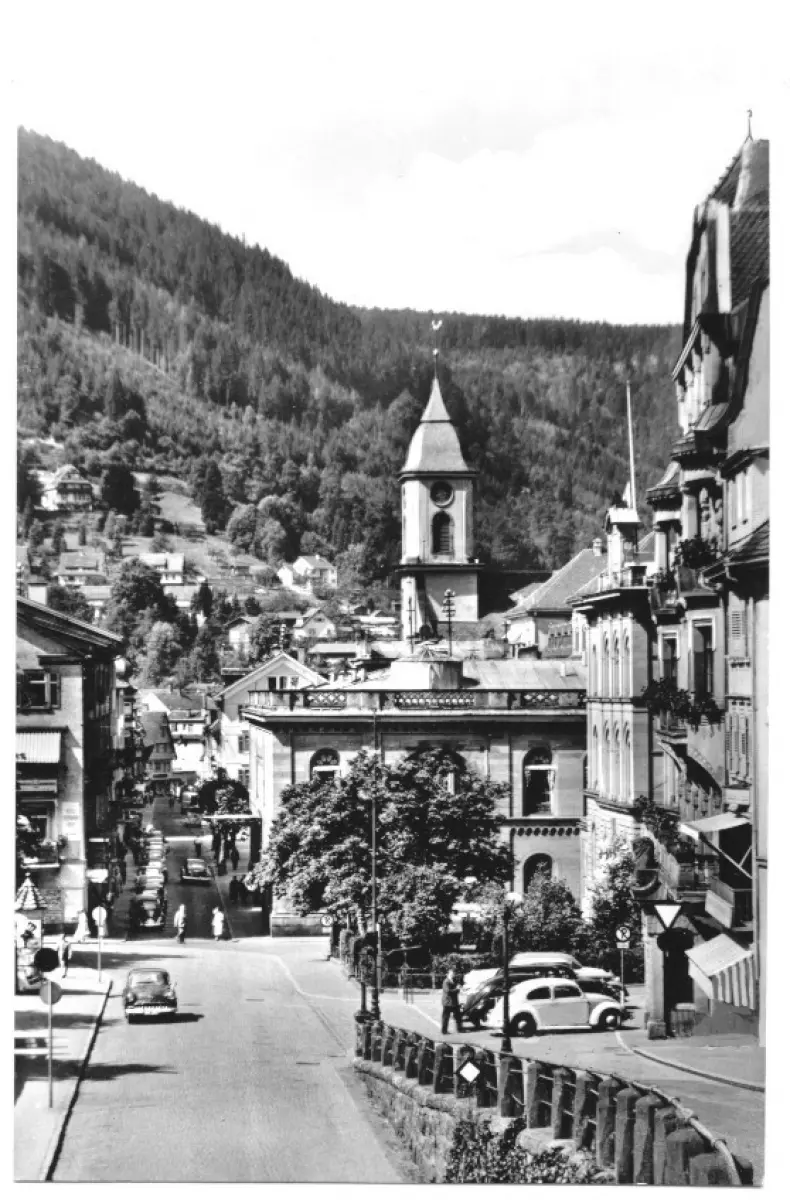 Ansichtskarte Wildbad im Schwarzw. Straßenpartie mit Kirche Erhaltung I ungelaufen, um 1965 Verlag: Schöning & Co, Lübeck