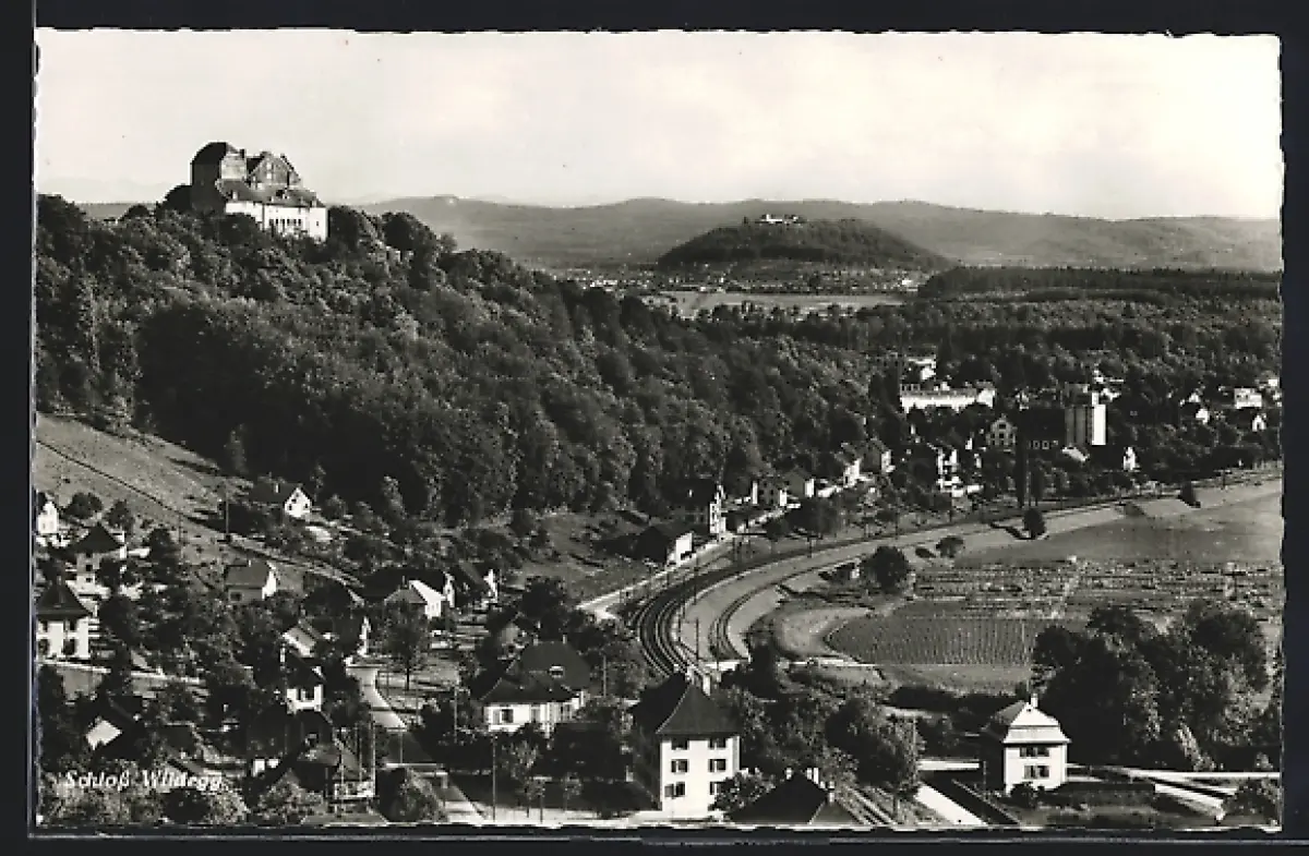 AK Wildegg, Ortsansicht mit Schloss und Bahnstrecke
