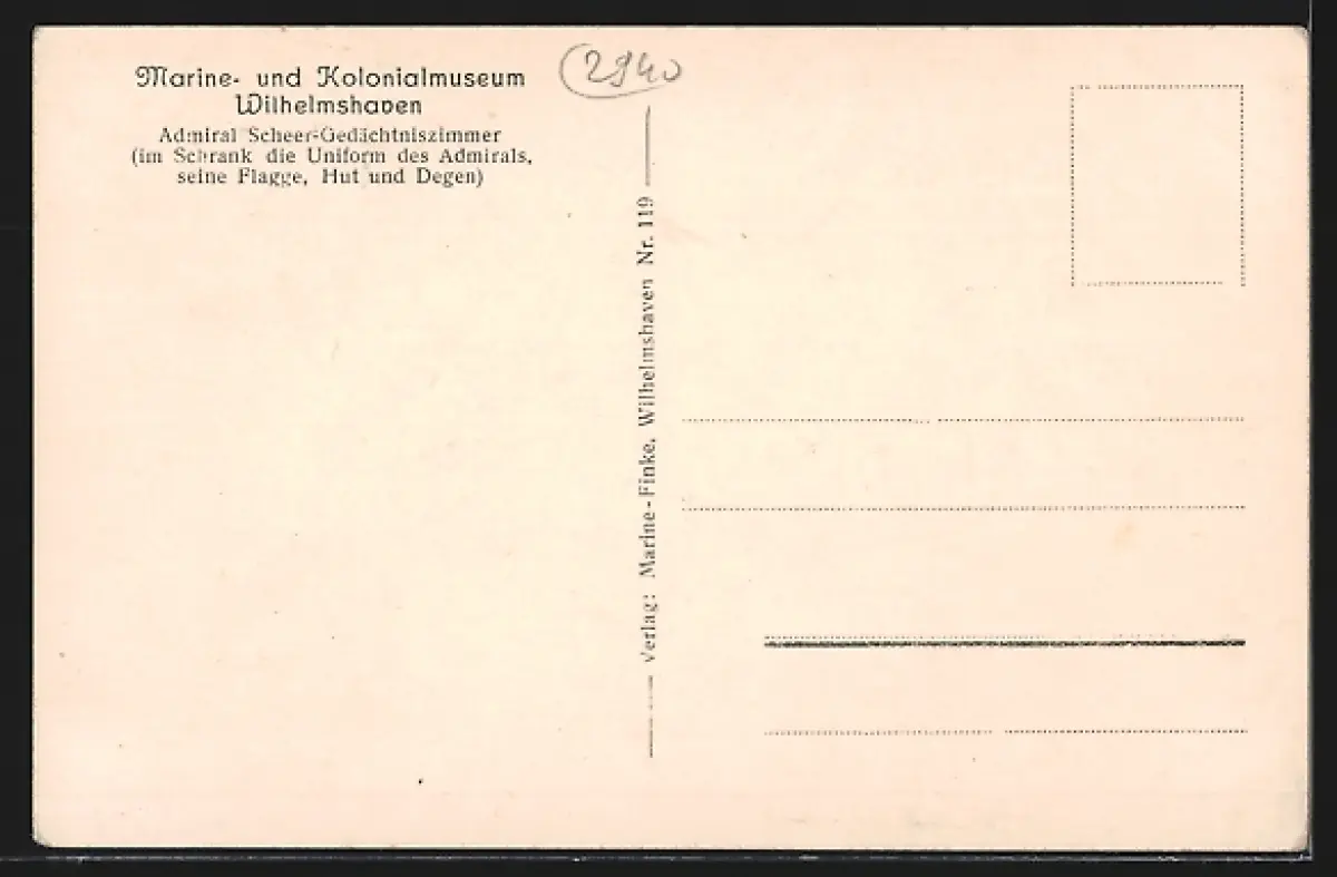 AK Wilhelmshaven, Admiral Scheer-Gedächtniszimmer im Marine- und Kolonialmuseum