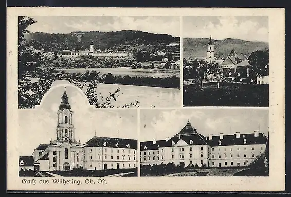 AK Wilhering /Ob. Öst., Schloss, Kirche, Ortspartie