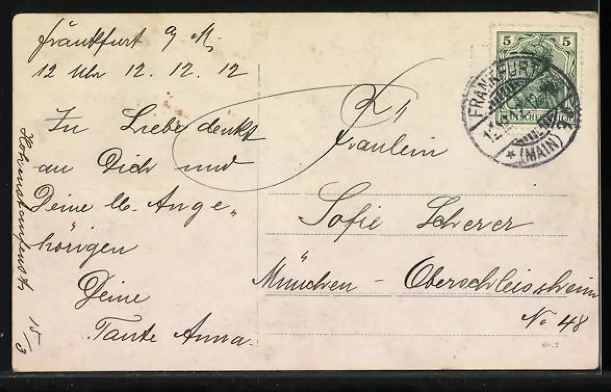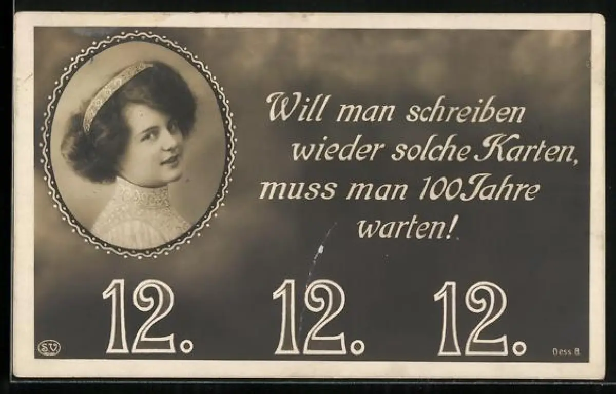 AK Will man schreiben wieder solche Karten..., 12.12.12, Fräulein mit Hochsteckfrisur