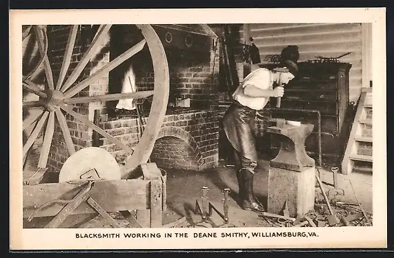 AK Williamsburg, VA, Blacksmith working in the Deane Smithy