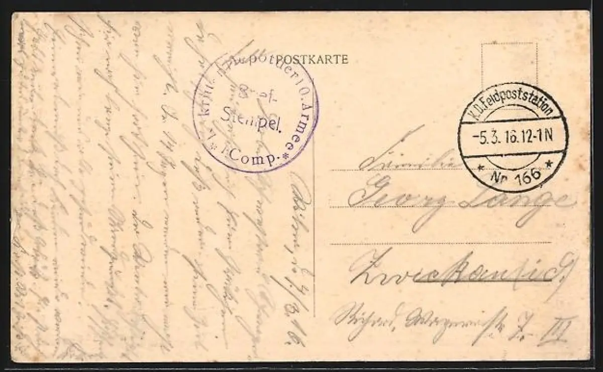 alte Ansichtskarte, gelaufen 1916, Bugspuren re., guter Zustand
