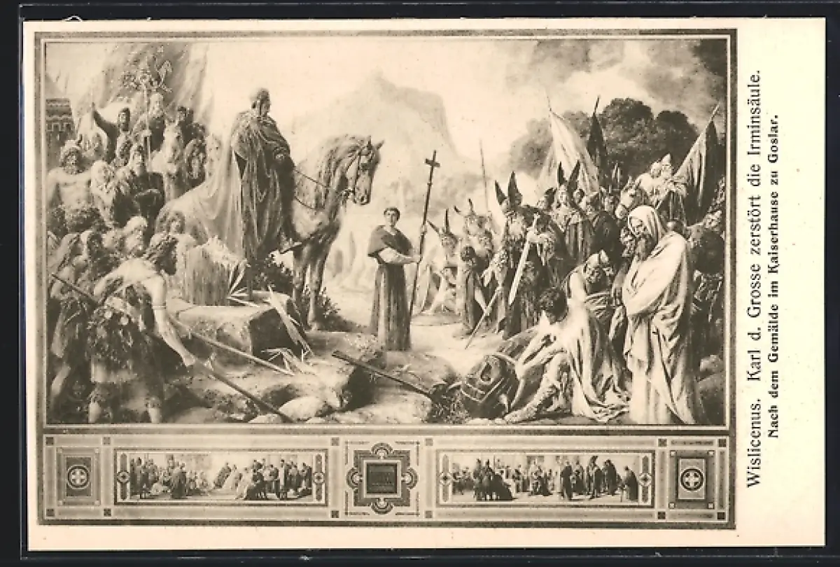 AK Wilsnack, Gemälde im Kaiserhaus, Karl d. Grosse zerstört die Irminsäule