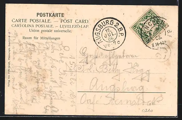 alte Ansichtskarte, gelaufen 1906, guter Zustand