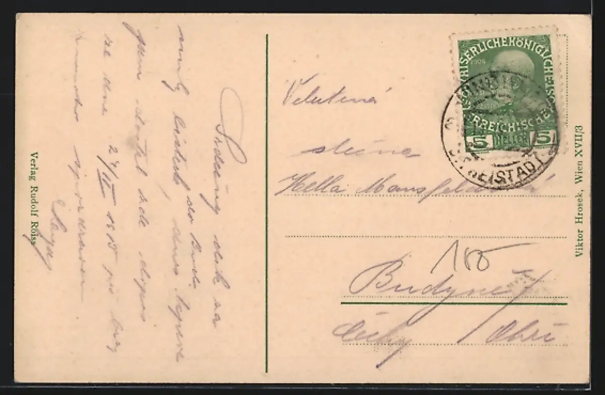 gelaufen 1915, Eckknick li. oben, Stempelspur, guter Zustand