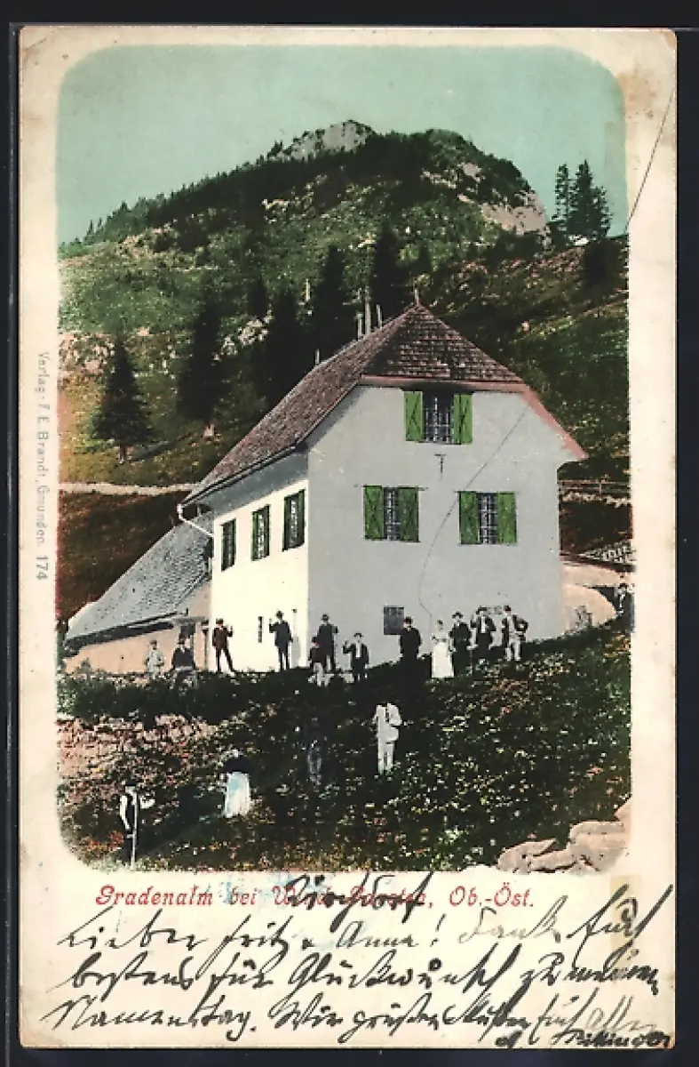 AK Windisch-Garsten, Gradenalm mit Almhaus und kleiner Versammlung