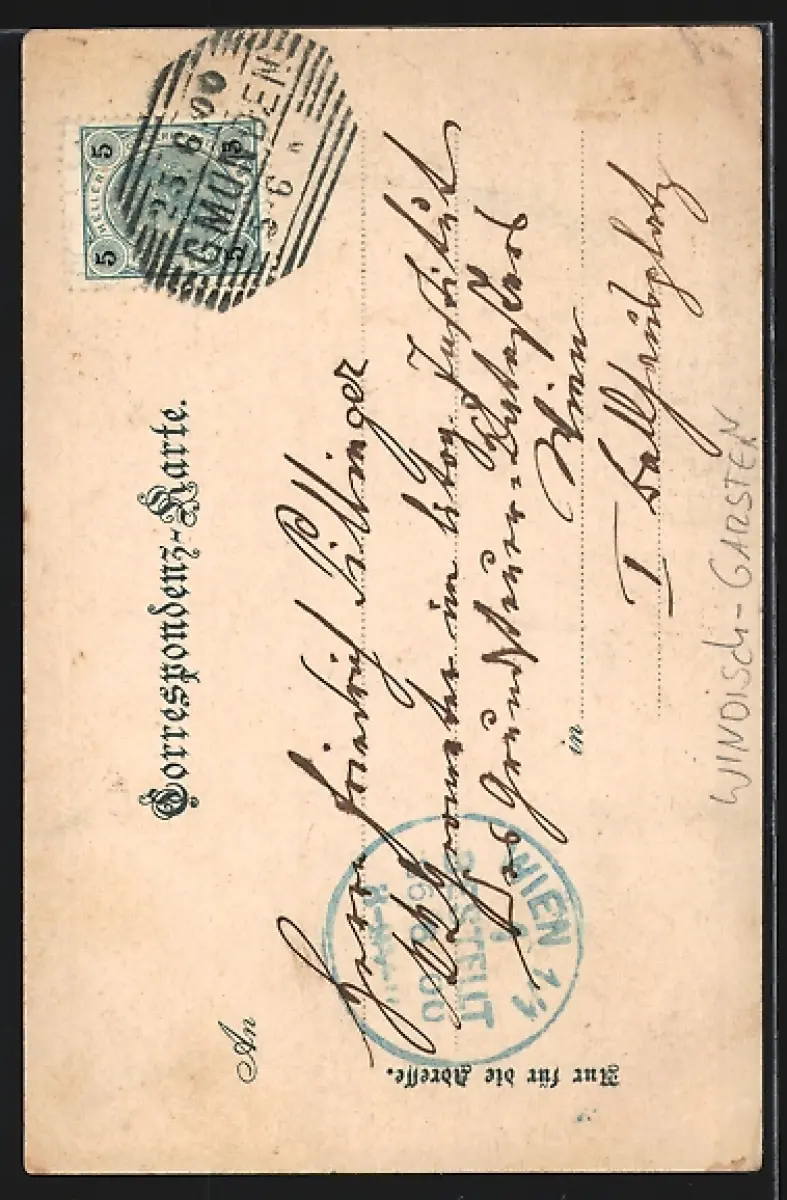 alte Ansichtskarte, gelaufen 1900, Eckknick oben li., guter Zustand