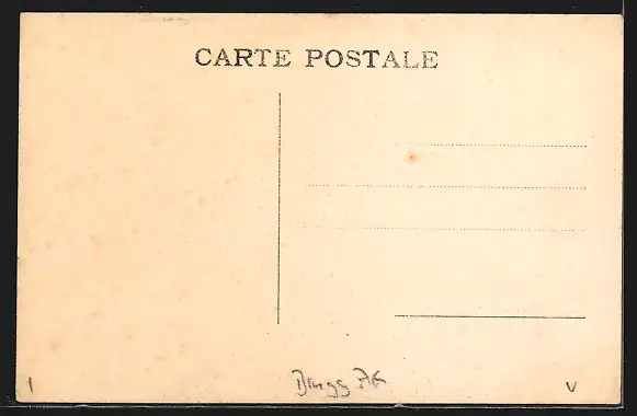 Personenbezogene Daten auf der Rückseite der Karte wurden durch blauen Textmarker unkenntlich gemacht. Die blauen Stellen sind auf die Vorderseite durchgeweicht und wirken sich negativ auf das Postkartenfoto aus