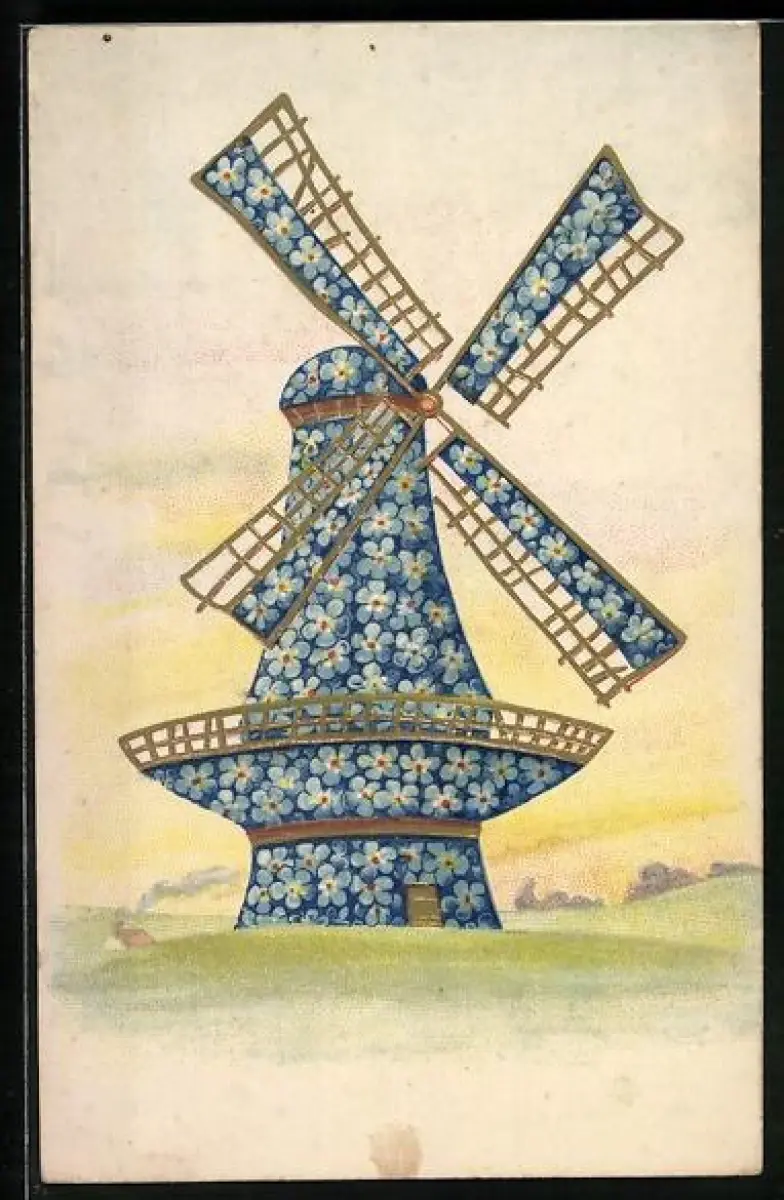 AK Windmühle aus Vergissmeinnicht, Blumenbild