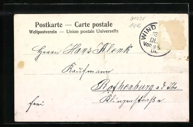 alte Ansichtskarte, gelaufen, Briefmarke entfernt, rückseitig Oberflächenschaden, guter Zustand