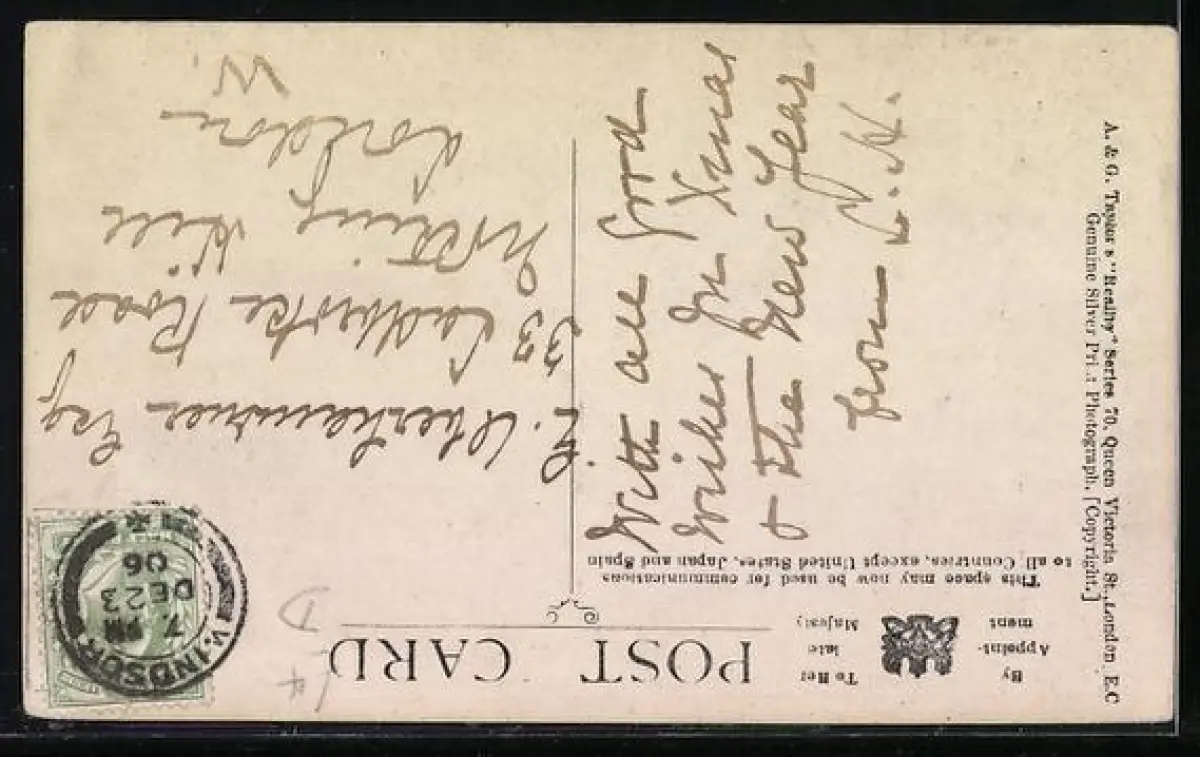 alte Ansichtskarte, gelaufen 1906, Abriebspuren re. oben, Eckknicke re. unten