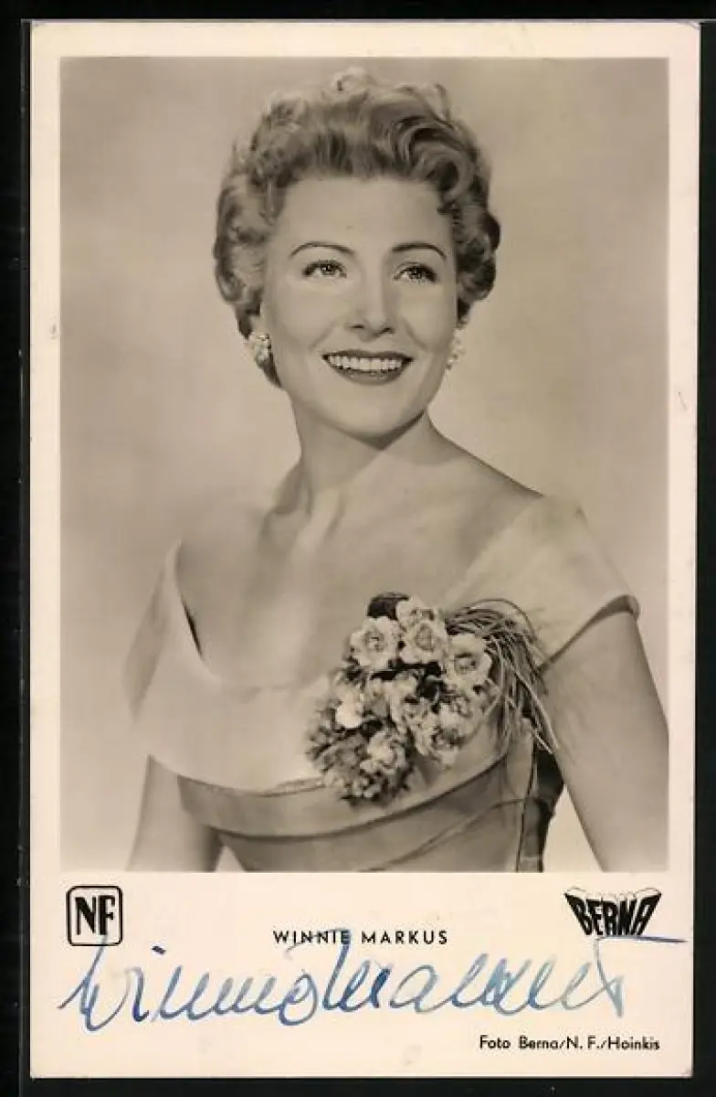 AK Winnie Markus mit Ansteckblumen, Autograph