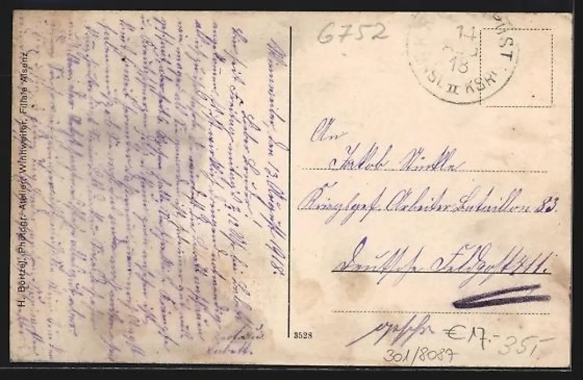 gelaufen 1918, guter Zustand