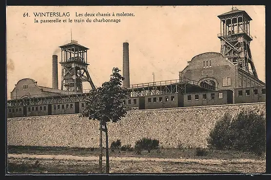 AK Winterslag, Les deux chassis a molettes, la passerelle et le train du charbonnage