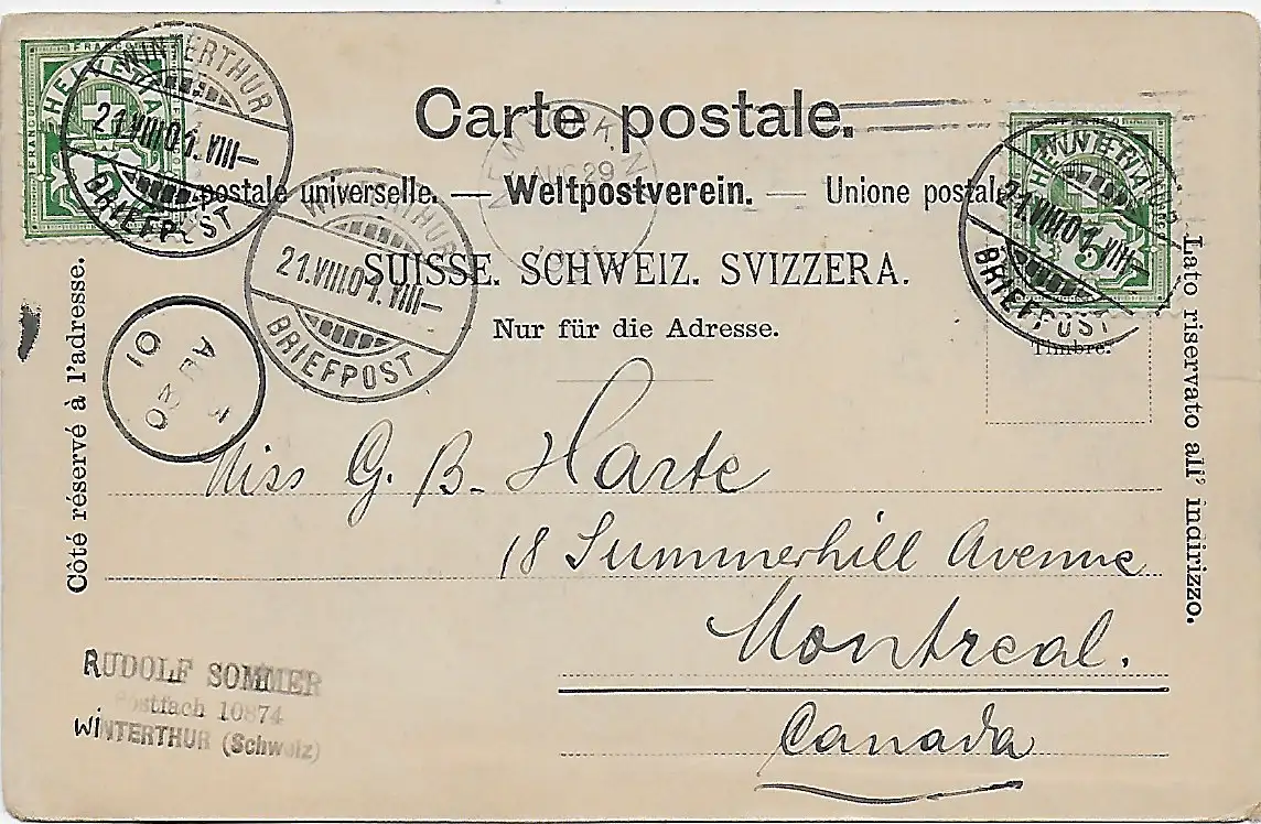 AK Winterthur, 1901 nach Montreal/Canada