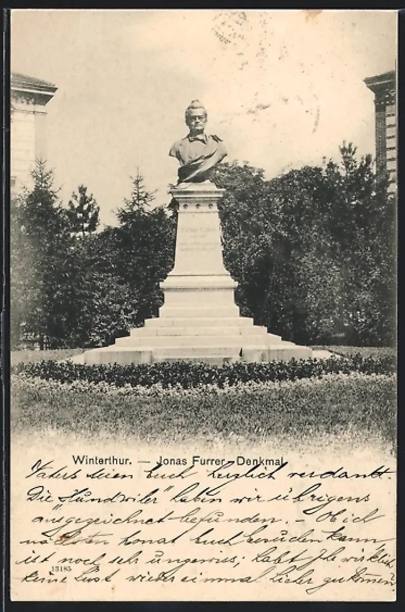AK Winterthur, Blick auf das Jonas Furrer-Denkmal