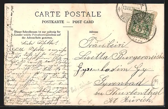 alte Ansichtskarte, gelaufen, Eckknick unten li., guter Zustand