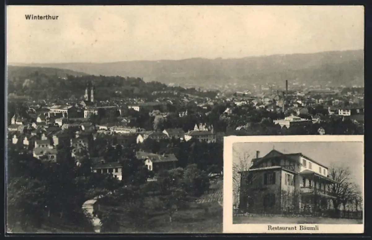 AK Winterthur, Restaurant Bäumli, Gesamtansicht aus der Vogelschau