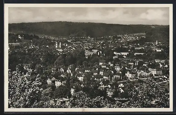 AK Winterthur, Stadtansicht aus der Vogelschau