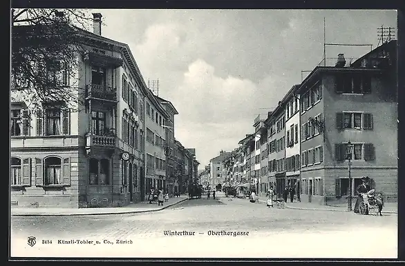 AK Winterthur, Strassenblick in die Oberthorgasse