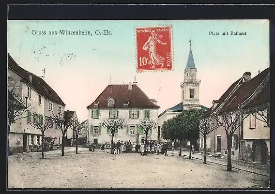 AK Winzenheim /O.-Els., Platz mit Rathaus