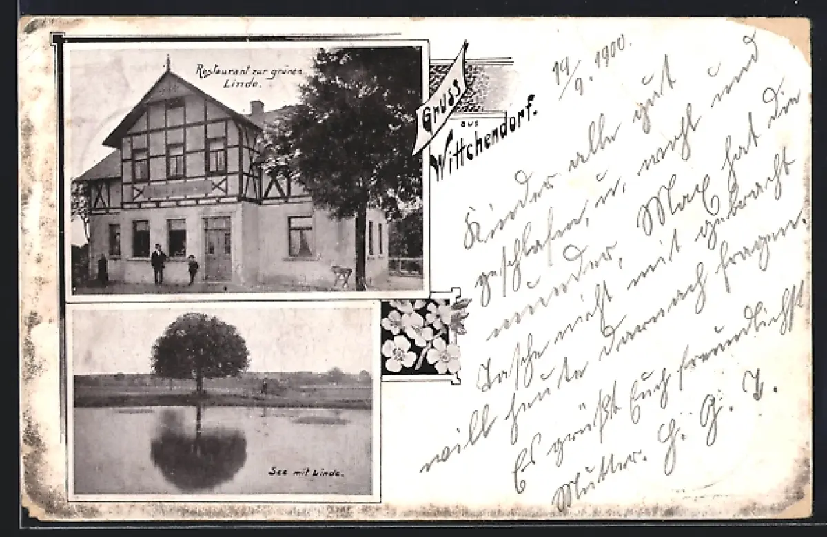AK Wittchendorf, Restaurant zur grünen Linde, See mit Linde