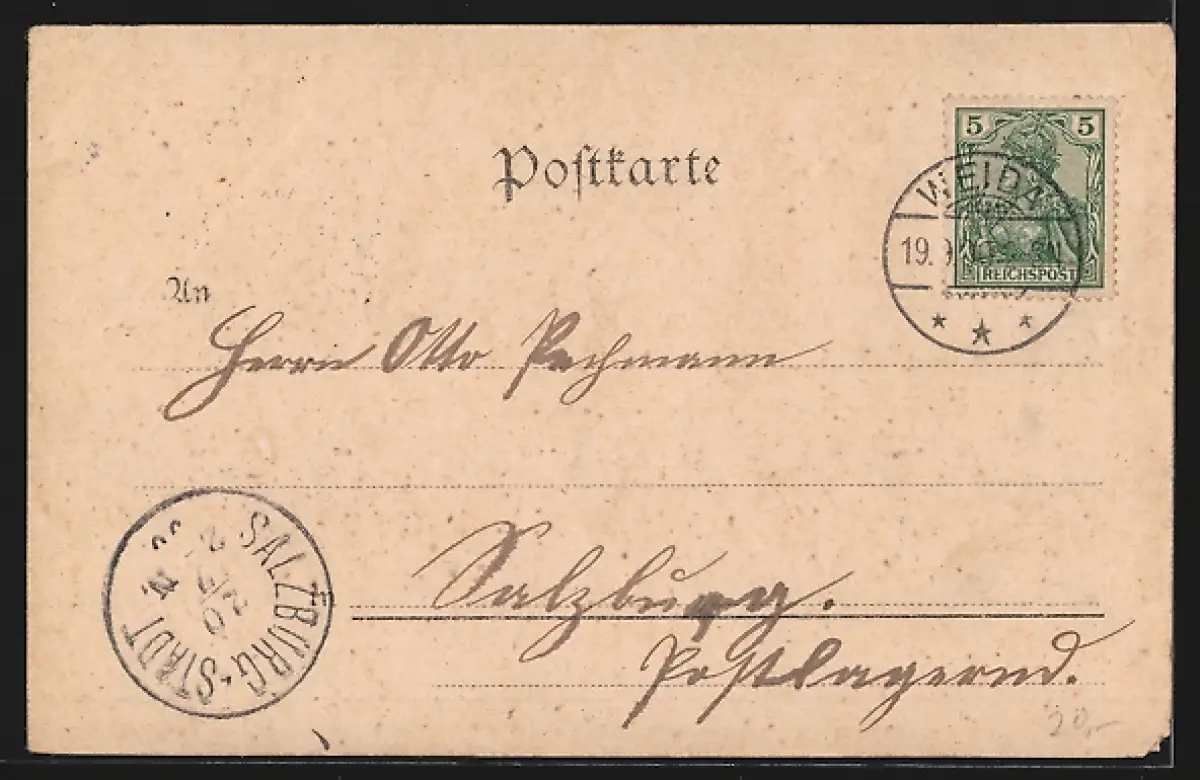 alte Ansichtskarte, gelaufen, Stempelspur, Eckknick rechts unten und links oben, kleine Fehlstelle linke untere Ecke, sonst guter Zustand