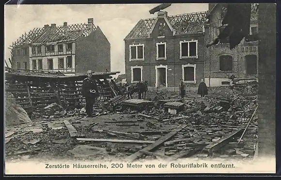 AK Witten-Annen, Explosion der Roburit-Fabrik 1906, zerstörte Häuserreihe