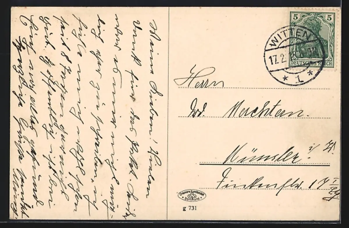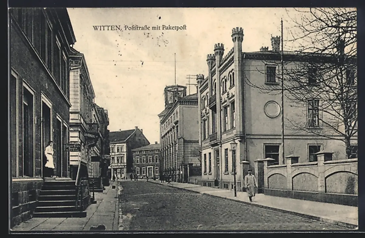 AK Witten, Poststrasse mit Paketpost