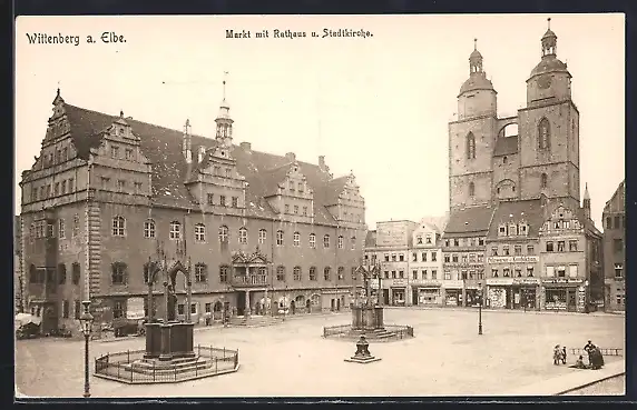 AK Wittenberg / Elbe, Markt mit Rathaus u. Stadtkirche